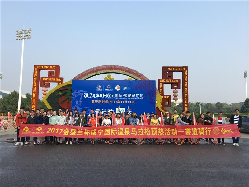 湖北日?qǐng)?bào)網(wǎng)訊(全媒體記者張文龍、通訊員盤(pán)麗嬋)29日,咸寧市40名志愿者圍繞咸寧馬拉松途經(jīng)的重要道路騎行一圈,為即將于11月11日開(kāi)跑的咸寧國(guó)際溫泉馬拉松預(yù)熱。