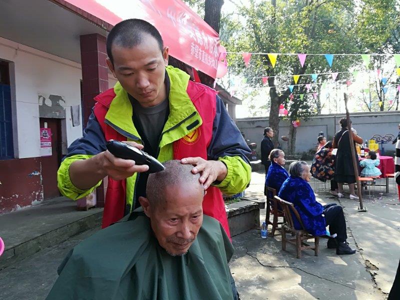 當(dāng)天上午8時,志愿者們走進福利院。一下子來這么多人,老人們高興得合不攏嘴。拉完家常,志愿者們開始分工做服務(wù),有搭舞臺的,有準(zhǔn)備食材做菜、做飯、包餃子的、有擺桌椅板凳的、有分配水果零食的、有為老人理發(fā)、按摩、修指甲的、中醫(yī)院的護士免費給老人做體檢、小朋友為老人端茶等。