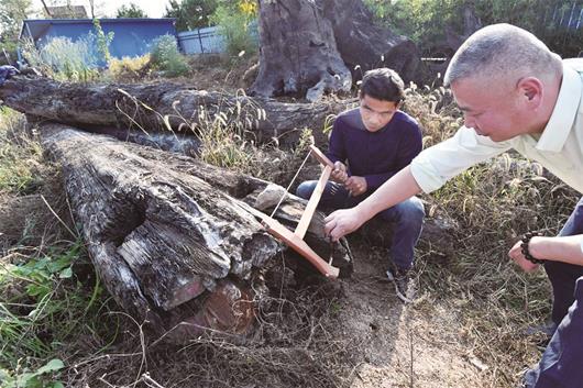 專家檢驗(yàn)?zāi)绢^橫截面 記者萬(wàn)多攝