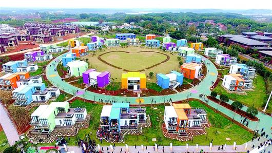 湖北日?qǐng)?bào)訊 23日,在美麗的咸寧梓山湖畔,華中最大的集裝箱酒店建成開放,33棟“集裝箱”、212個(gè)不同主題的房間,營造出濃濃愛意。今年7月,咸寧市與湖北聯(lián)投集團(tuán)簽約,建設(shè)華中首個(gè)以愛情為主題的大型度假區(qū)——蜜月小鎮(zhèn)。4個(gè)月后,蜜月小鎮(zhèn)以全新面貌亮相。 (記者陳勇視界網(wǎng) 任軒丹)