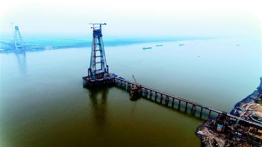 湖北日報訊 12月4日,正在建設(shè)中的嘉魚長江公路大橋南北主塔分別達到164米、158米,相當于50多層樓高。大橋建設(shè)者開展勞動競賽,力爭在2018年春節(jié)前完成主塔封頂。咸寧市擁有128公里長江岸線卻沒有一座長江大橋,嘉魚長江公路大橋2019年底建成通車后,將終結(jié)咸寧無長江大橋的歷史。 (湖北日報全媒記者 陳勇 通訊員 周漓 攝)