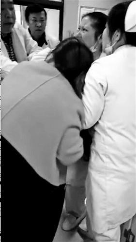 視頻顯示,女護(hù)士被醫(yī)院其他醫(yī)護(hù)人員護(hù)在一邊,靠著墻壁滑坐在地上,捂著肚子哭泣。另一名女子情緒激動(dòng),在撲向該護(hù)士時(shí)被幾名醫(yī)護(hù)人員攔住后喊著:“我要見你們?cè)洪L(zhǎng)?!?/p>