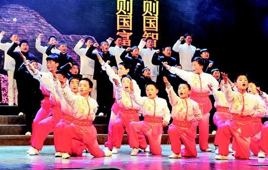 “野無(wú)遺賢,萬(wàn)邦咸寧;首出庶物,萬(wàn)國(guó)咸寧……”12月19日,由省委宣傳部、省教育廳、省廣播電視臺(tái)聯(lián)合主辦的“同聲誦經(jīng)典——2017湖北省‘起點(diǎn)閱讀·朝讀經(jīng)典’校園巡回展演活動(dòng)”走進(jìn)咸寧。當(dāng)天下午,在咸寧市會(huì)議中心,稚嫩的童聲、整齊的朗誦,配舞臺(tái)水墨畫的背景,讓在場(chǎng)的近千名中小學(xué)生如入詩(shī)畫之境?!斑筮髲?fù)唧唧,木蘭當(dāng)戶織。不聞機(jī)杼聲,唯聞女嘆息……”一首《木蘭詩(shī)》讓觀眾們猶如置身于北朝的烽煙中,青年花木蘭敢于擔(dān)當(dāng)?shù)木褡屓司磁?,值得?dāng)代青少年學(xué)習(xí)借鑒。