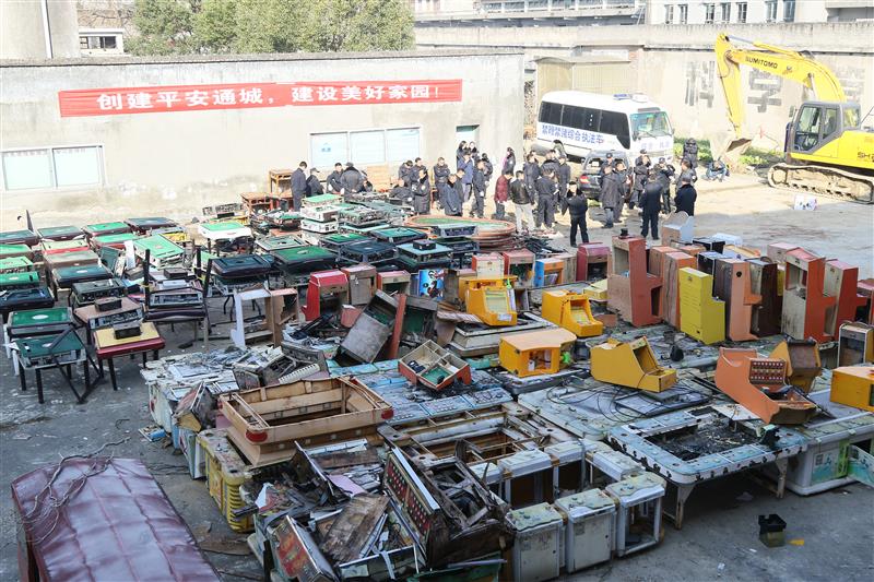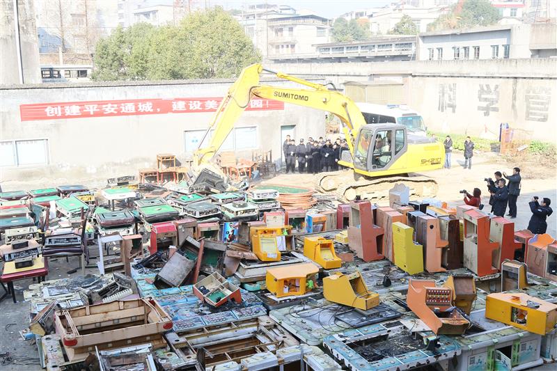 湖北日?qǐng)?bào)訊(記者陳嶼、通訊員劉建平、吳忠勇)12月20日上午10時(shí)許,隨著指揮人員一聲號(hào)令,從通城各鄉(xiāng)鎮(zhèn)收繳的152臺(tái)涉賭電子游戲機(jī)、186臺(tái)麻將機(jī)被集中銷毀。