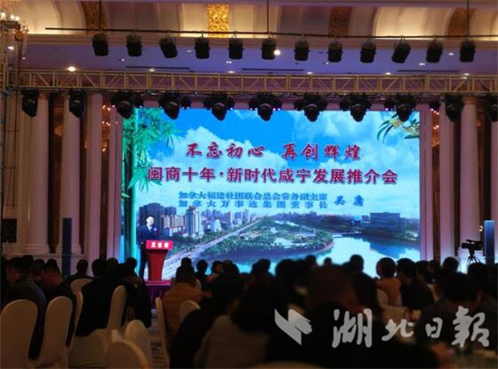 湖北日?qǐng)?bào)訊(記者張文龍、通訊員饒紅斌)12月29日下午,咸寧市舉辦“不忘初心 再創(chuàng)輝煌”閩商十年·新時(shí)代咸寧發(fā)展推介會(huì)。會(huì)上透露,近10年來,咸寧市福建商會(huì)吸納會(huì)員企業(yè)400多家,聚集閩商3萬(wàn)多人,投資總額600多億元,成為咸寧規(guī)模最大、人氣最旺、影響力最強(qiáng)的一個(gè)異地商會(huì)。