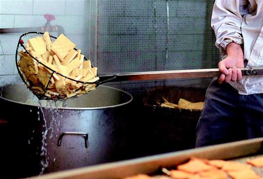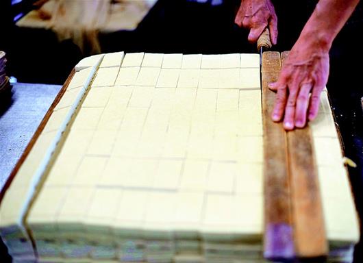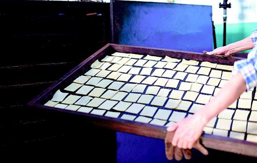 湖北日?qǐng)?bào)訊 通城麥?zhǔn)械穆槔备勺悦鞒家褌鞒形灏儆嗄甑臍v史,從民間傳統(tǒng)手工制作到現(xiàn)代流水線生產(chǎn),如今已形成了一定的規(guī)模。制作的原材料包括黃豆、香料、食鹽、雞精、辣椒油等,在保證傳統(tǒng)豆制品高營(yíng)養(yǎng)的同時(shí),運(yùn)用了特殊的鹵制技術(shù),融色香、味美、辣、脆于一體。其濃郁的農(nóng)家風(fēng)味成為大街小巷的一大特色小吃,熱銷廣東、浙江、江西及湖北各地。(視界網(wǎng) 劉建平 攝)