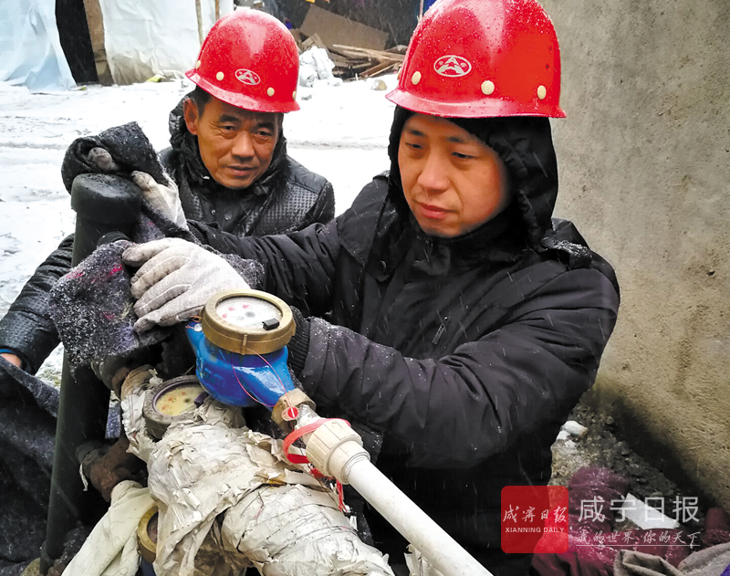 1月初,該公司投入35萬元購買防凍棉、黃沙等防凍物資,投入人力600余人次,對城區(qū)及向陽湖、賀勝橋、咸嘉新城等農(nóng)村戶外水表水管進行了包裹,為 41500塊戶外水表和2600處水管穿上“防凍衣”防止 水表水管“凍傷”。29日,室外氣溫低至-6℃,部分老舊小區(qū)的室外水管冰堵無水,水表被凍爆漏水。接到消息后,公司搶修人員迅速行動,爬梯登高,蹚雪化冰,更換水表。