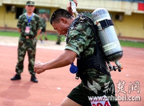 圖為消防官兵開(kāi)展背負(fù)空氣呼吸器5000米跑科目現(xiàn)場(chǎng)。通訊員 朱燕林?jǐn)z