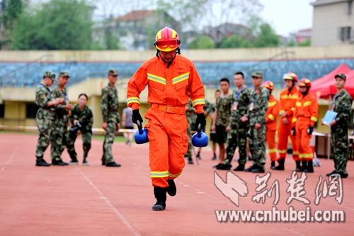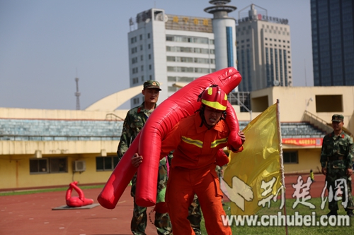 圖為消防官兵開(kāi)展400米疏散物資救人科目現(xiàn)場(chǎng)。通訊員 朱燕林?jǐn)z