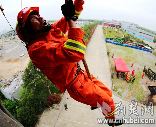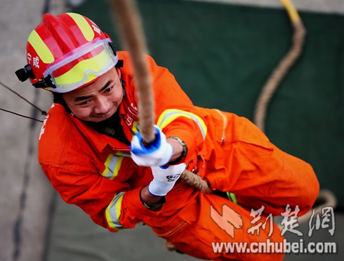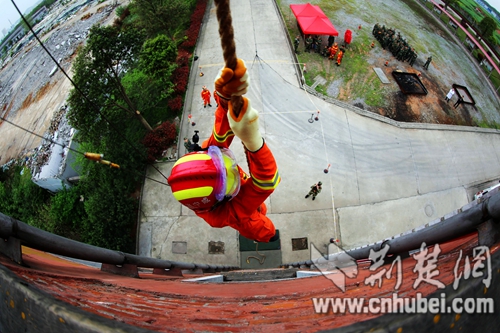 圖為消防官兵開(kāi)展繩索攀爬科目現(xiàn)場(chǎng)。通訊員 朱燕林?jǐn)z