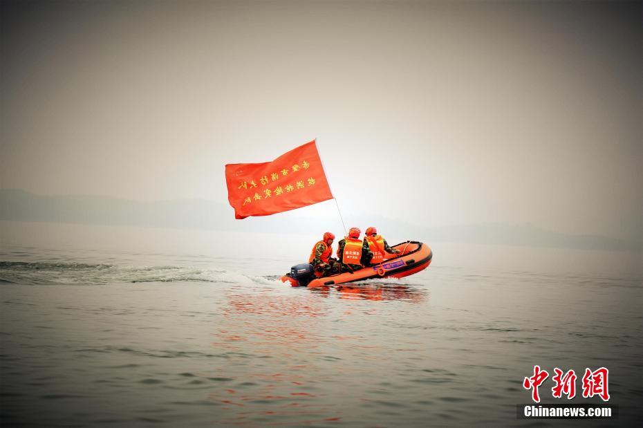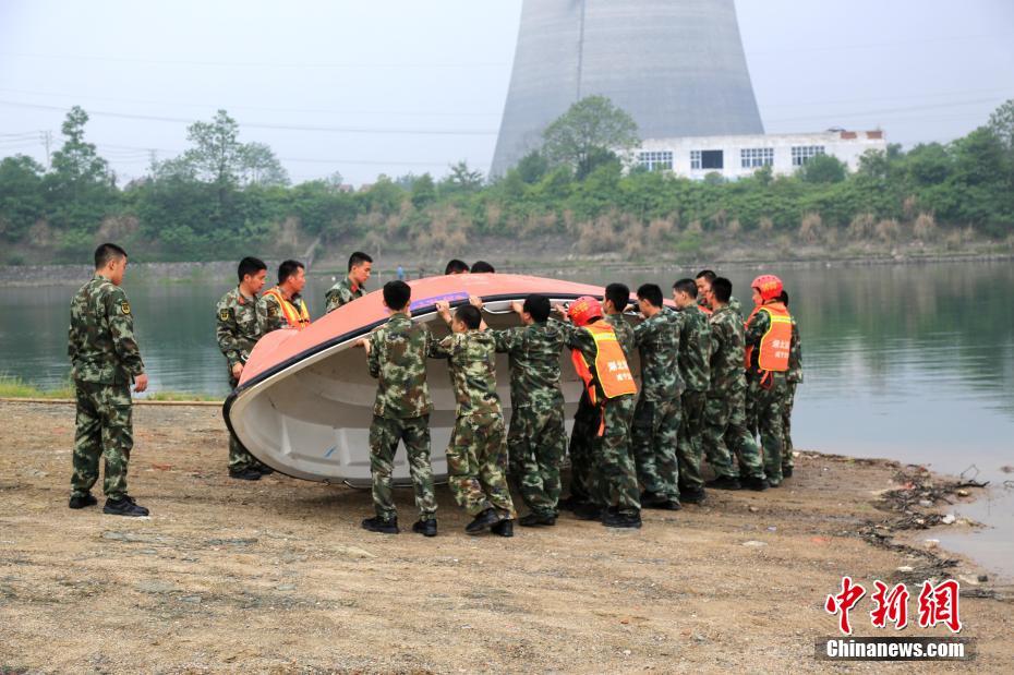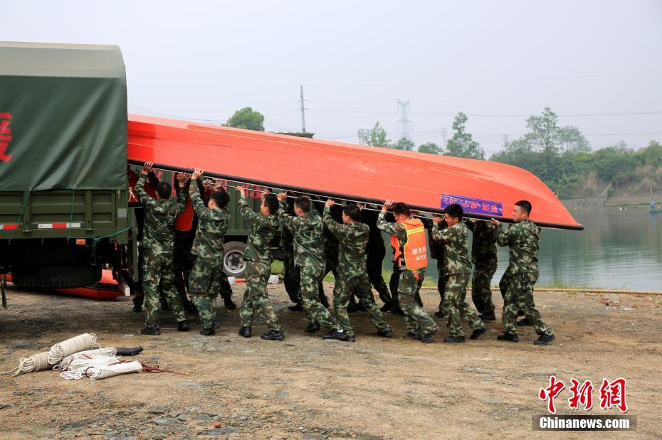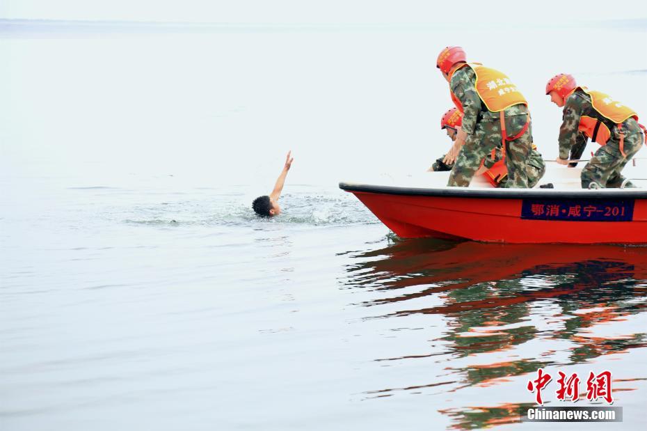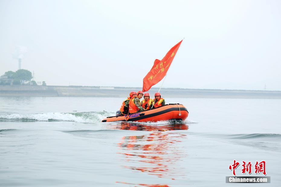 湖北赤壁消防舉行防汛抗洪演練。 徐聰聰 攝